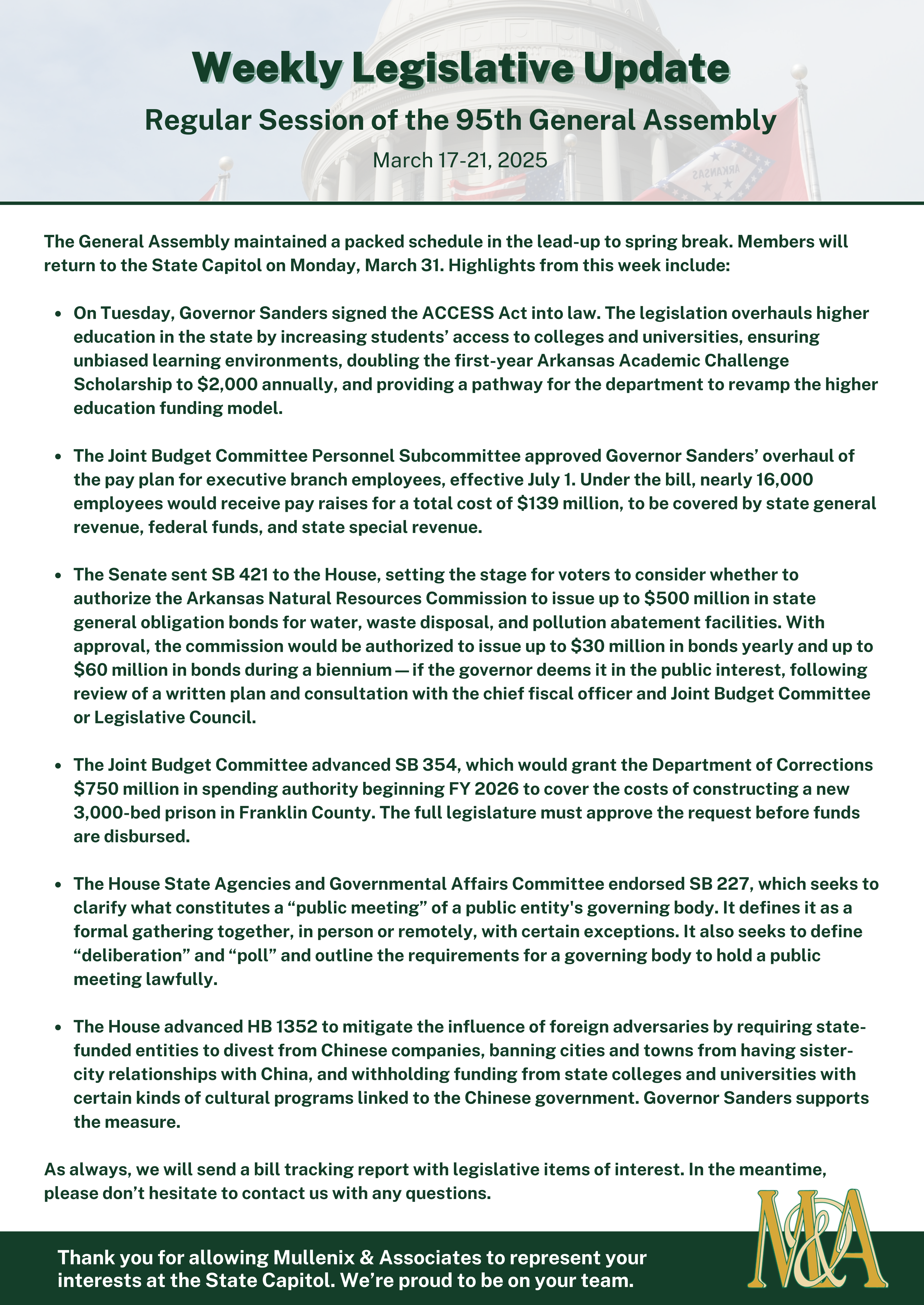 Arkansas State Capitol News: March 17-21, 2025